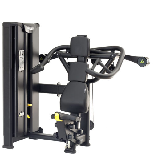 Maszyna siłowa przeznaczona do ćwiczeń mięśni dwugłowych ramion w pozycji siedzącej, w szczególności przeznaczona dla kobiet. Konstrukcja urządzenia wykonana jest z płaskoowalnego kształtownika o wymiarze 125x60x3, dwukrotnie malowana metoda proszkową. Osłony stosu wykonane są z blachy. Maszyna posiada 9-stopniową pneumatyczną regulację położenia siedziska. Zastosowane siłowniki pneumatyczne pozwalają na łatwą regulację elementów przez ćwiczącego bez konieczności schodzenie z urządzenia. Stos wyposażony jest w magnetyczny selektor obciążenia. Selekcja obciążenia odbywa się co 5kg. Elementy tapicerskie są wykonane z pianki wtórnie spienianej o grubości 4cm i zostały dopasowane do anatomicznych kształtów ćwiczącego, co sprzyja komfortowi i bezpieczeństwu użytkowania. Rączki wykonane są z poliuretanu nie ulegającego degradacji w styczności z ludzkim potem. Dodatkowym atutem jest unikalny system przeniesienia obciążenia za pomocą biomechaniczne przebadanych krzywek opracowanych we współpracy z Zakładem Biomechaniki Warszawskiej Akademii Wychowania Fizycznego, który chroni przed kontuzjami wynikłymi z przeciążenia mięśni, a także zapewnia wzrost efektów ćwiczenia dochodzący do 30%.