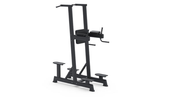 This dual-function pull-up device utilizes a pull-up bar and parallel bars. Designed to exercise the latissimus dorsi, chest, and arm extensors and flexors. The additional option of leg raises strengthens the lower abdominal muscles. The device is constructed from a flat-oval section measuring 125x60x3 mm, powder-coated twice. The upholstery is tailored to the user’s anatomical shape, ensuring comfort and safety. The elements in direct contact with the feet are made of sheet metal with special non-slip rubber strips for greater stability and safety during exercise. The handles are made of polyurethane, which is resistant to degradation in contact with human sweat.