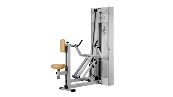 Strength machine designed for exercising the muscles of the widest back. It has an adjustable position of the rollers, which allows it to be adapted to the needs of the exerciser. The stack covers are made of polycarbonate. The load is regulated by a magnetic load selector. The upholstery elements have been adjusted to the anatomical shapes of the exerciser, which contributes to the comfort and safety of use.