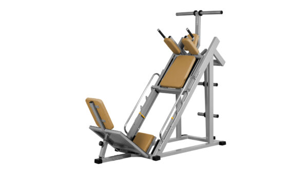 A strength machine designed to exercise the muscles of the legs and buttocks both in a squat and pushing out in a lying position. Elements in direct contact with the feet are covered with grooved rubber, ensuring greater stability during exercise. The upholstery elements have been adjusted to the anatomical shapes of the exerciser, which contributes to the comfort and safety of use.