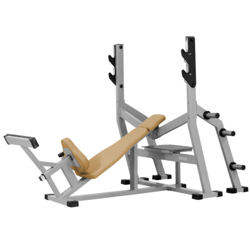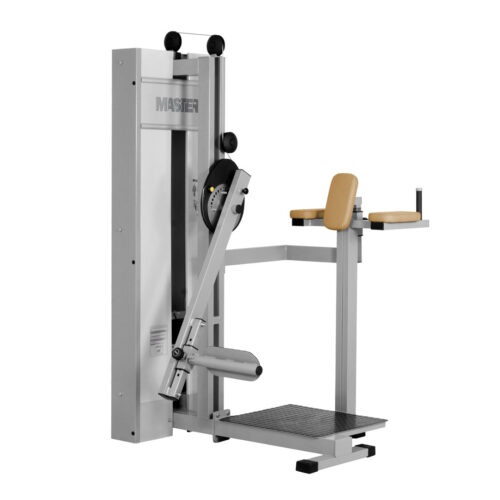 A strength machine designed for exercising the leg muscles with a load. It has an adjustable backrest angle, which allows it to be adjusted to the height and needs of the exerciser. The stack covers are made of polycarbonate. The load is regulated by a magnetic load selector. Elements in direct contact with the feet are covered with grooved rubber, ensuring greater stability during exercise. The upholstery elements have been adjusted to the anatomical shapes of the exerciser, which contributes to the comfort and safety of use.