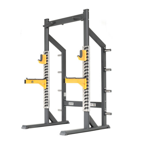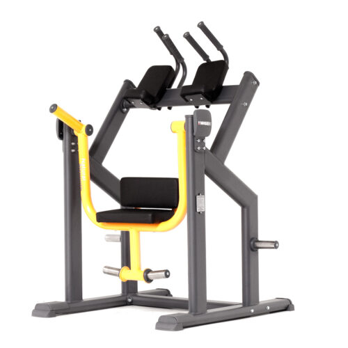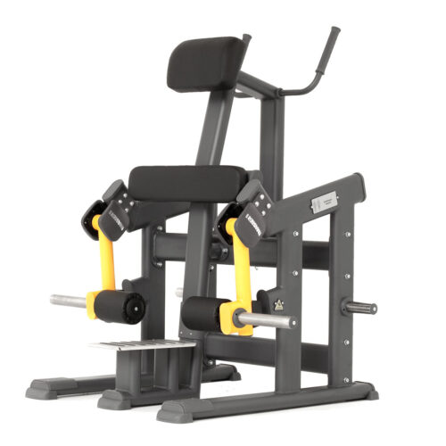 A strength machine from the group of machines for free weights for exercising the muscles of the legs, especially the muscles of the thighs and buttocks, intended for advanced bodybuilders and athletes. The additional possibility of imposing a heavy load (up to 250 kg on each arm) and the safety of the exercise allow you to increase your strength capabilities without fear of serious injuries. Elements in direct contact with the feet are made of chrome-nickel sheet equipped with special non-slip rubberized strips ensuring greater stability and safety during exercise.