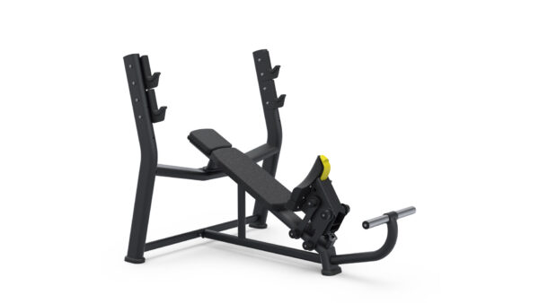 Ławka przeznaczona do wyciskania sztangi pod kątem w górę. W standardzie wyposażenia znajdują się zamocowane na stałe stojaki, posiadające 2-poziomowe dźwigary oblane odpornym na uderzenia poliuretanem. Obecność 9-stopniowej pneumatycznej regulacji położenia siedziska umożliwia dopasowanie urządzenia do wzrostu ćwiczącego. Zastosowane siłowniki pneumatyczne pozwalają na łatwą regulację elementów bez konieczności schodzenie z urządzenia. Konstrukcja ławki wykonana jest z płaskoowalnego kształtownika o wymiarach 125x60x3, dwukrotnie malowana metoda proszkową i została tak zaprojektowana, aby zapewnić maksymalną stabilność podczas użytkowania. Elementy tapicerskie są dopasowane do anatomicznych kształtów ćwiczącego sprzyjają komfortowi i bezpieczeństwu podczas treningu. Istnieje możliwość zamontowania w ławce dodatkowych stojaków na obciążenia BMS04.