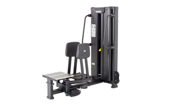 Maszyna siłowa przeznaczona do ćwiczeń mięśni odwodzicieli stawów biodrowych w pozycji stojącej (mięsień pośladkowy, mięsień grzebieniowy oraz przywodziciel długi, krótki, wielki, smukły). Konstrukcja urządzenia wykonana jest z płaskoowalnego kształtownika o wymiarze 125x60x3, dwukrotnie malowana metodą proszkową. Osłony stosu wykonane są z profilowanej blachy. Stos wyposażony jest w magnetyczny selektor obciążenia. Selekcja obciążenia odbywa się co 5kg. Elementy tapicerskie są wykonane z pianki wtórnie spienianej o grubości 4cm i zostały dopasowane do anatomicznych kształtów ćwiczącego, co sprzyja komfortowi i bezpieczeństwu użytkowania. Elementy mające bezpośredni kontakt ze stopami wykonane są z blachy chromoniklowej wyposażonej w specjalne antypoślizgowe gumowane listwy zapewniające większą stabilność i bezpieczeństwo podczas ćwiczenia. Dodatkowym atutem jest unikalny system przeniesienia obciążenia za pomocą biomechaniczne przebadanych krzywek opracowany we współpracy z Zakładem Biomechaniki Warszawskiej Akademii Wychowania Fizycznego, który chroni przed kontuzjami wynikłymi z przeciążenia mięśni, a także zapewnia wzrost efektów ćwiczenia dochodzący do 30%.