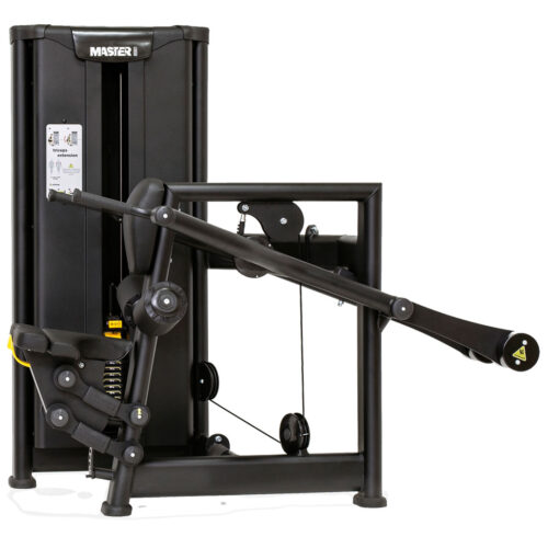 Maszyna siłowa z grupy maszyn na wolne ciężary do ćwiczeń mięśni czworogłowych uda w pozycji siedzącej, przeznaczona dla zaawansowanych kulturystów i sportowców. Dodatkowa możliwość nałożenia dużego obciążenia (do 100kg na każde ramię) i bezpieczeństwo ćwiczenia umożliwiają zwiększanie swoich możliwości siłowych bez obaw o ciężkie kontuzje. Wszystkie elementy stalowe cięte są laserowo z wyjątkową dokładnością, co przekłada się na jakość ćwiczenia. Maszyna posiada 5-stopniową regulację oparcia oraz 7-stopniową regulację pufek. Konstrukcja urządzenia wykonana jest z płaskoowalnego kształtownika o wymiarze 125x60x3, dwukrotnie malowana metodą proszkową. Elementy tapicerskie są wykonane z pianki wtórnie spienianej o grubości 4cm i zostały dopasowane do anatomicznych kształtów ćwiczącego, co sprzyja komfortowi i bezpieczeństwu użytkowania. Rączki wykonane są z poliuretanu nie ulegającego degradacji w styczności z ludzkim potem.