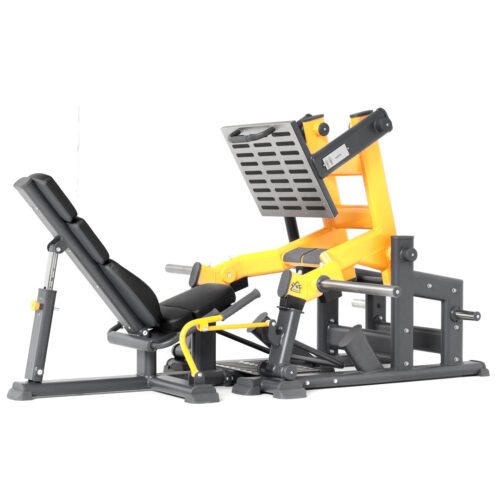 Maszyna siłowa z grupy maszyn na wolne ciężary do ćwiczeń mięśni nóg, w szczególności mięśni ud i pośladków, przeznaczona dla zaawansowanych kulturystów i sportowców. Dodatkowa możliwość nałożenia dużego obciążenia (do 650 kg) i bezpieczeństwo ćwiczenia umożliwiają zwiększanie swoich możliwości siłowych bez obaw o ciężkie kontuzje. Zaawansowanie pod względem biomechanicznym urządzeń przekłada się na doskonałe efekty ćwiczonych grup mięśniowych. Konstrukcja urządzenia wykonana jest z płaskoowalnego kształtownika o wymiarze 125x60x3, dwukrotnie malowana metodą proszkową. Suwnica posiada 4-stopniową regulację oparcia, dzięki czemu możliwe jest ćwiczenie osobom o różnym wzroście oraz 3-stopniową regulację oporu platformy na nogi. Doskonałą pracę maszyny zapewniają łożyska liniowe i pręty indukcyjnie utwardzane. Elementy tapicerskie są wykonane z pianki wtórnie spienianej o grubości 4cm i zostały dopasowane do anatomicznych kształtów ćwiczącego, co sprzyja komfortowi i bezpieczeństwu użytkowania. Rączki wykonane są z poliuretanu nie ulegającego degradacji w styczności z ludzkim potem. Elementy mające bezpośredni kontakt ze stopami wykonane są z blachy chromoniklowej wyposażonej w specjalne antypoślizgowe gumowane listwy zapewniające większą stabilność i bezpieczeństwo podczas ćwiczenia.